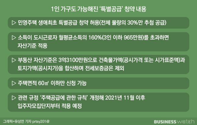 특히 1인 가구에게 1인가구 특별공급 기회가 생겼다는 점이 인상적인데요.