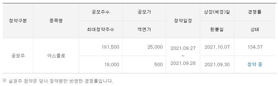 3) 아스플로 공모주 청약 배정 결과 발표 : 9/30(목)