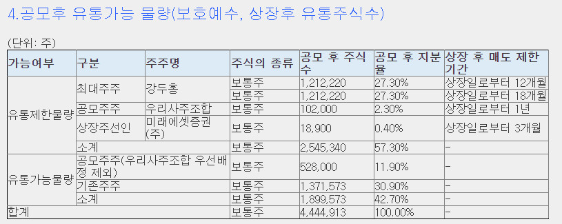 의무보유확약비율은 11%대로 다소 낮다는것입니다.