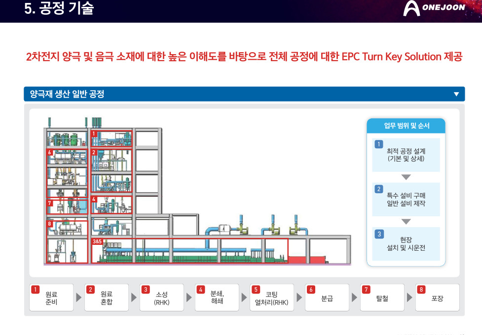2차전지의 핵심 소재인 양극재 생산에 필요한 소성로의 원천 기술 확보에 성공한 기업이 바로 원준입니다.