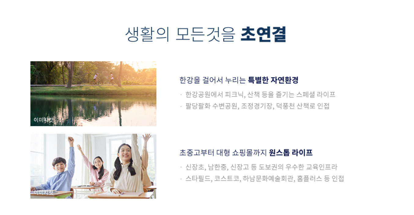 단지 바로 앞에 신장초등학교와 남한중학교가 위치해있으며 인근에 신장고등학교가 위치해있습니다.