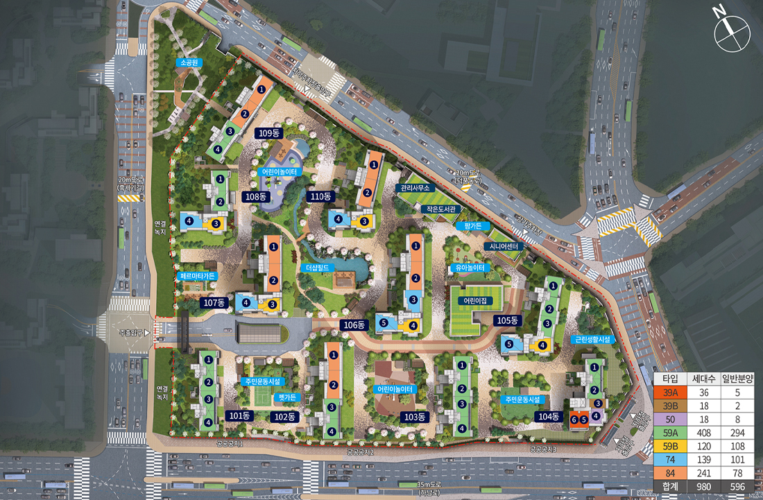 4) 타입별 세대수 : 총 980세대(분양세대 596세대)