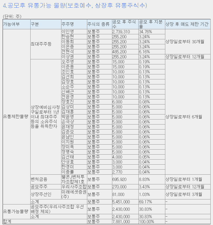 의무보유 확약 비율은 아쉬운 수치기는 하지만 아스플로(11.7%)에 비해서는 괜찮은 수치이긴 합니다.