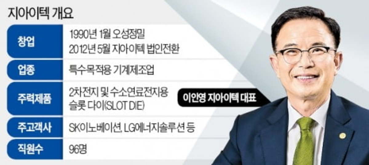 지아이텍은 2차전지와 수소전지를 코팅하는 슬롯다이 제조하는 기술을 가지고 있는데요.