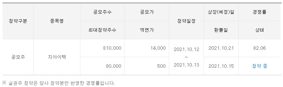 1) 지아이텍 공모주 청약일 : 10/12(화)~10/13(수) 10:00 ~ 16:00