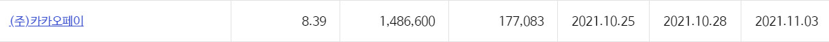 삼성증권 카카오페이 공모주 청약 경쟁률 2.39:1