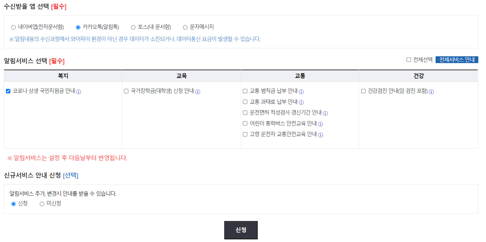 그 외에도 교통 범칙금 납부나 교통 과태료 납부, 건강검진 결과 안내 등을 지원해줘서 가입해두면 정말 편리한 서비스입니다.