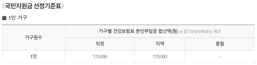 이후에는 본인이 1인 가구냐, 2인 이상 외벌이 가구냐, 2인 이상 맞벌이 가구냐에 따라 아래 기준표를 확인해주시면 됩니다.