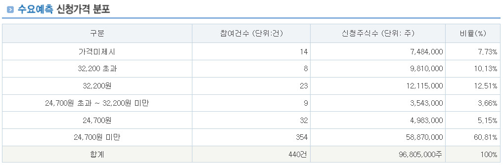 기관투자자의 22.64%가 공모가 상단인 32,200원 이상을 제시 했습니다.