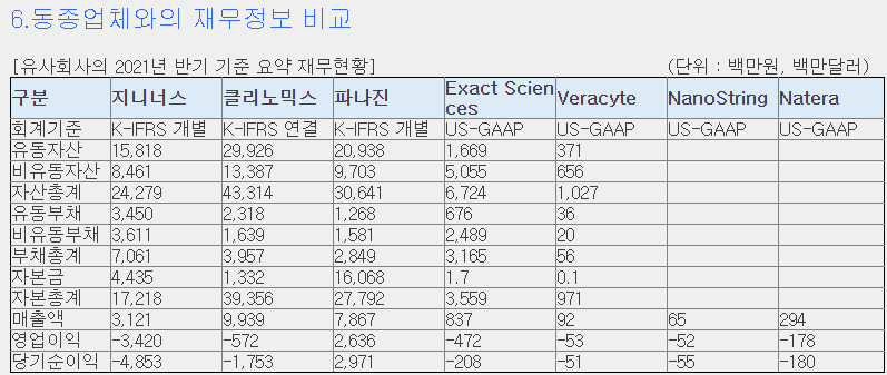 유사기업으로는 마크로젠, 클리노믹스, 파나진 등이 있습니다.
