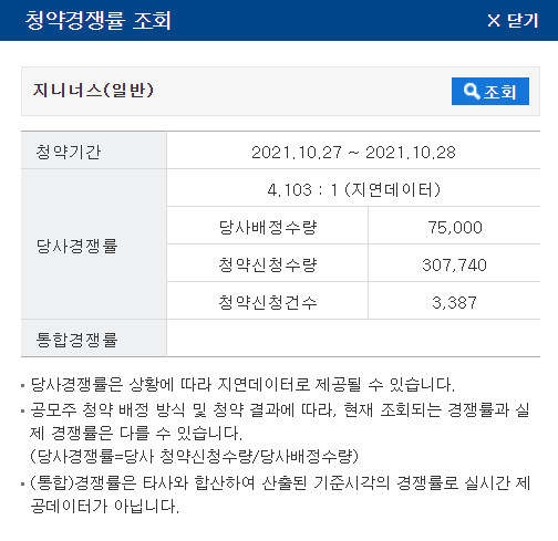 증권사별 지니너스 청약 경쟁률 확인하기