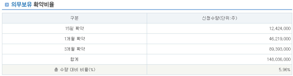 이 부분이 다소 아쉽기는 하네요. 상위 81.3%에 해당하는 의무보유확약비율입니다.