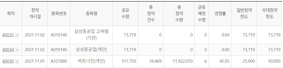 2) 청약증거금 환불일 : 11/4(목)
