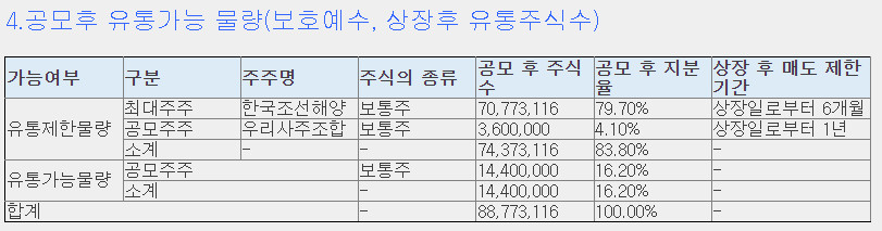 실제로 상장 당일날 유통되는 물량은 전체 주식 수의 16.2%정도 밖에 되지 않습니다.