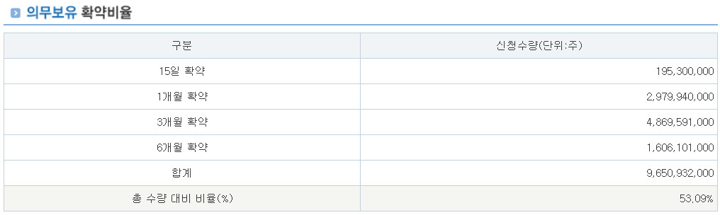 기관투자자 중 무려 53.09%가 의무보유 확약을 걸었습니다.